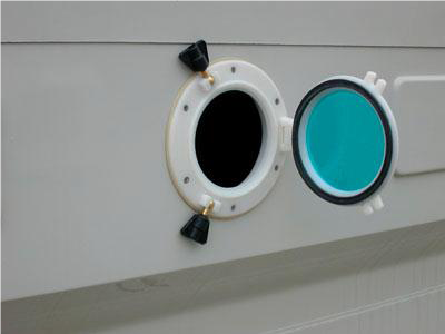 - INSPEKTIONSLUKE kreisförmig mit Polyamidkörper und Polycarbonatfenster, leicht zu öffnen für eine bequeme Inspektion im Inneren des Turms.