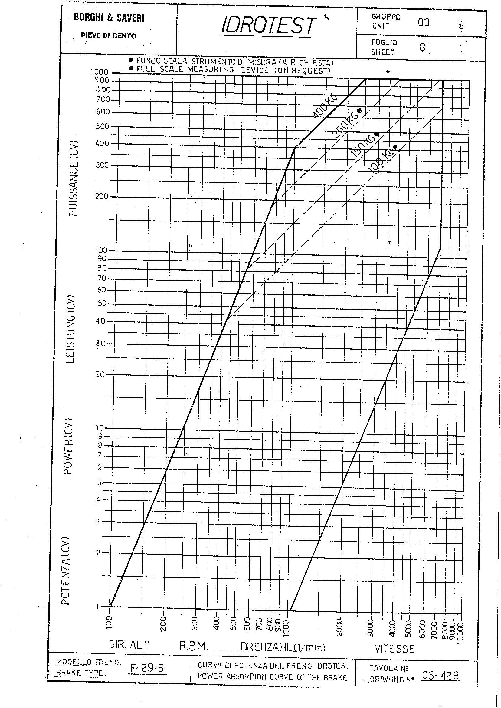 L'attrezzatura che vi proponiamo è una sala prove perfettamente funzionanete che veniva utilizzata per motori MARINI . Il banco prova IDROTEST F29 ha una potenze di frenatura dichiarata dal costruttore Borghi & Saveri di 600 CV .
